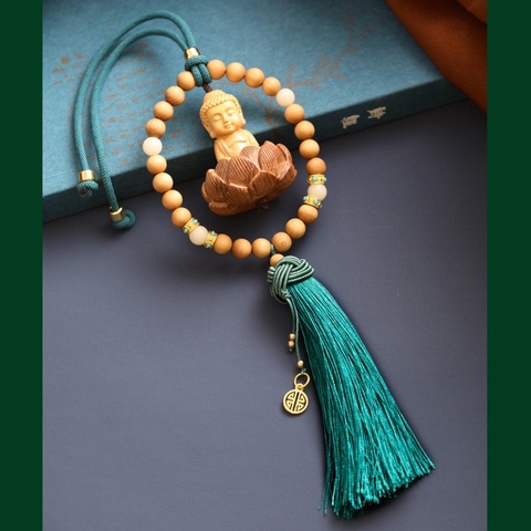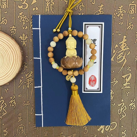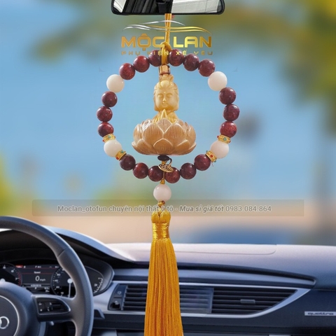 Khánh treo gương xe ô tô quan âm và phật tổ vòng gỗ hoàng liên thu hút tài lộc mang lại may mắn